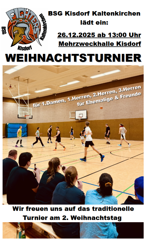 Zum traditionellen Weihnachtsturnier der Seniorenmannschaften am 2.Weihnachtstag (26.12.2025) seid ihr ganz herzlich eingeladen.
